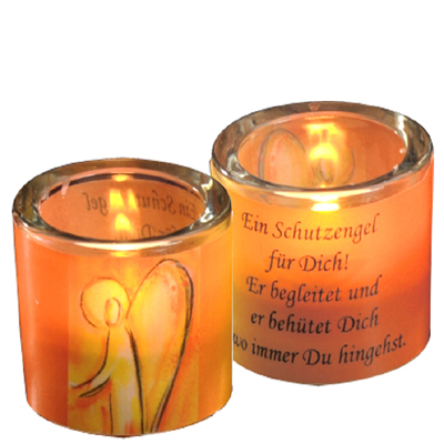 Glaslicht ENGEL mit Spruch, orange