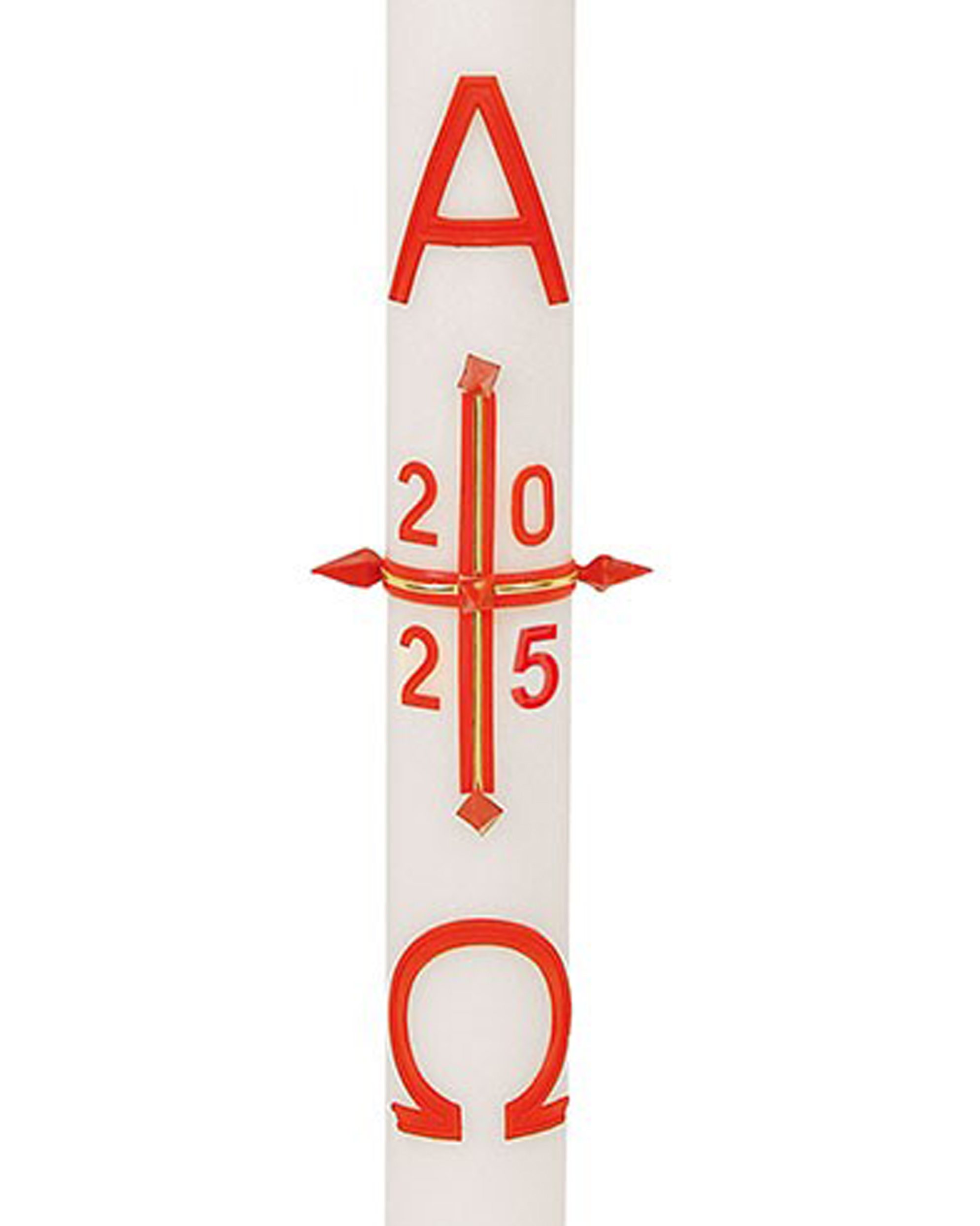 Maße: 800/70 mm (H / D)Kerzenfarbe: elfenbein10 % Bienenwachsgezogene Qualität für besten AbbrandMotiv: Kundstdruck mit WachsauflageHandarbeitinklusive Trage-TropfschutzundJahreszahl des kommenden Osterfestes